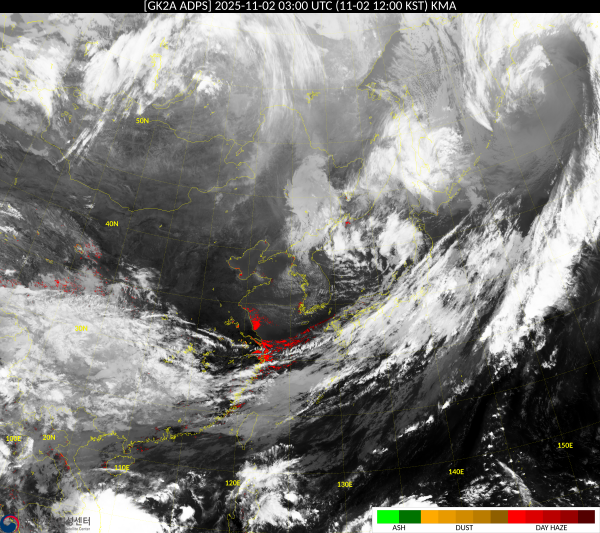 - 2025-11-02 21:00:00 o 강풍주의보 : 서해5도, 강원도(강릉평지, 동해평지, 태백, 삼척평지, 속초평지, 고성평지, 양양평지, 강원북부산지, 강원중부산지, 강원남부산지), 충청남도(태안, 당진, 서산, 보령, 서천, 홍성), 전라남도(여수, 해남, 완도, 영암, 무안, 함평, 영광, 목포, 신안(흑산면제외), 진도, 흑산도홍도), 전북자치도(고창, 부안, 군산, 김제), 경상북도(영덕, 울진평지, 포항, 경북북동산지), 인천(옹진), 울릉도독도 o 풍랑주의보 : 동해남부앞바다(경북북부앞바다), 동해남부남쪽안쪽먼바다, 동해남부남쪽바깥먼바다, 동해남부북쪽안쪽먼바다, 동해남부북쪽바깥먼바다, 동해중부전해상, 서해전해상, 남해서부서쪽먼바다, 제주도앞바다(제주도서부앞바다), 제주도남쪽바깥먼바다, 제주도남동쪽안쪽먼바다, 제주도남서쪽안쪽먼바다 o 한파주의보 : 경기도(광명, 과천, 안산, 부천, 포천, 양주, 수원, 안양, 오산, 평택, 군포, 의왕, 용인, 이천, 안성, 화성, 여주, 양평), 강원도(횡성, 원주, 강원북부산지), 충청남도(청양, 예산, 태안, 보령, 서천, 홍성), 충청북도(괴산, 제천), 전북자치도(김제, 완주, 진안, 무주, 장수, 임실, 익산, 남원), 경상북도(상주), 경상남도(함양, 거창, 합천, 남해), 서울(서울동북권, 서울서남권), 인천(강화군,옹진군 제외), 대전, 세종