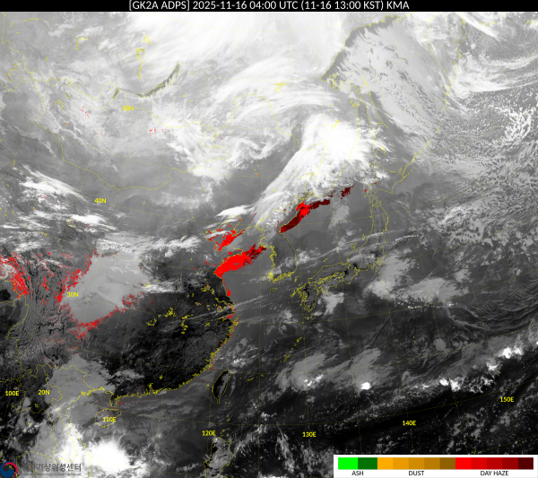 - 2025-11-16 16:00:00 o 강풍주의보 : 강원도(강원북부산지, 강원중부산지, 강원남부산지), 경상북도(경북북동산지) o 건조주의보 : 강원도(강릉평지, 동해평지, 삼척평지, 속초평지, 고성평지, 양양평지)